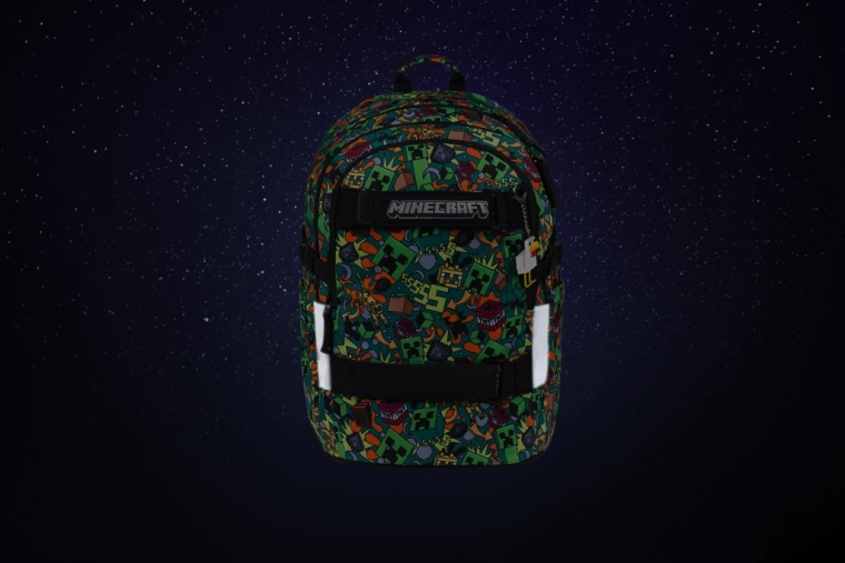 Tänu anatoomiliselt vormitud seljaosale, reguleeritavatele rihmadele ja helkurelementidele on komplekt turvaline ja mugav kanda. Kõik osad on veekindlast taaskasutatud materjalist ning kasutavad usaldusväärseid YKK tõmblukke pikaealisuse tagamiseks. MINECRAFTi ühtne kujundus aitab kõik esemed stiilselt kokku sobitada.