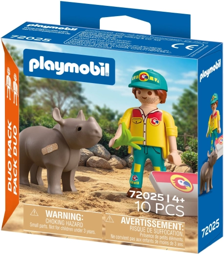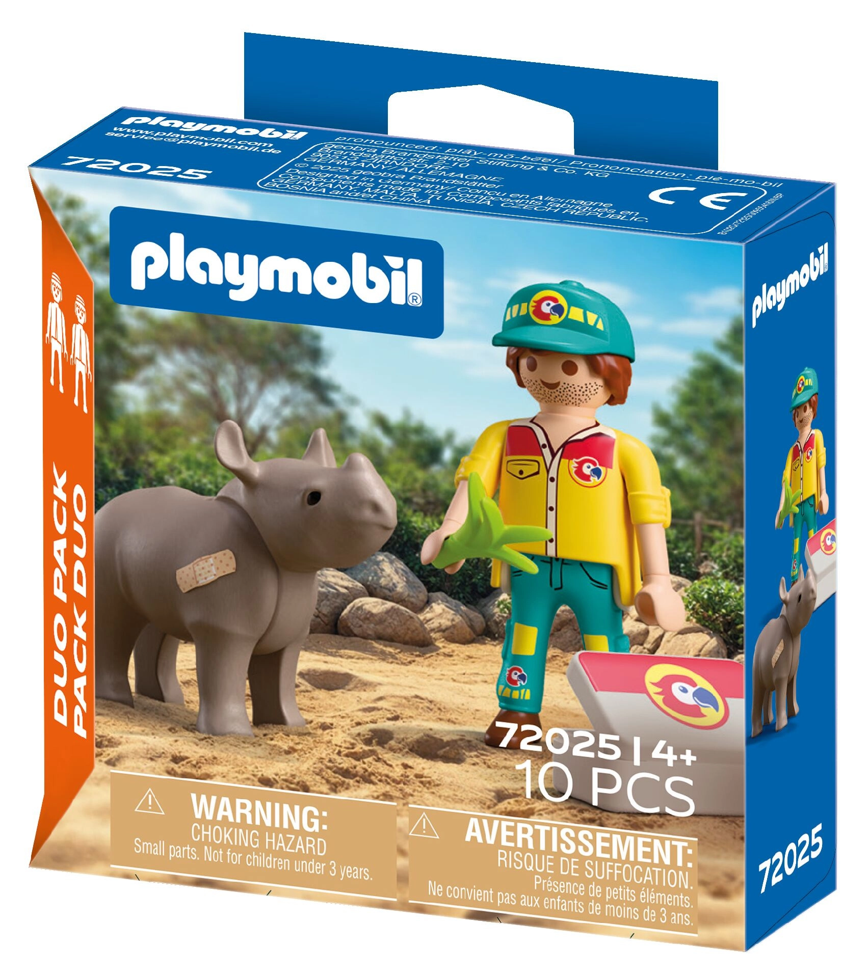 Avastage lõbus PLAYMOBIL Duo Pack komplekt, kus lapsed saavad hoolitsevaks hooldajaks ja aitavad ninasarvikul paraneda realistlike lisatarvikute abil. Komplekt toetab loovat mängu, kaastunnet loomade vastu ning laiendab suurepäraselt Playmobili maailma. Sisaldab hooldaja figuuri, ninasarvikut ja meditsiinitarvikuid veelgi autentsemateks seiklusteks.