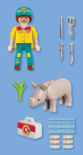 Astuge PLAYMOBILi maailma ja aidake vigastatud ninasarvikul taas jalule saada. See Duo Pack sari toob kaks detailset figuuri ja valiku praktilisi tarvikuid, millega lapsed saavad lavastada lugematul hulgal Playmo-City loomaaia lugusid. Realistlikud tööriistad ja varustus arendavad kujutlusvõimet ning hoolivust loomade vastu.