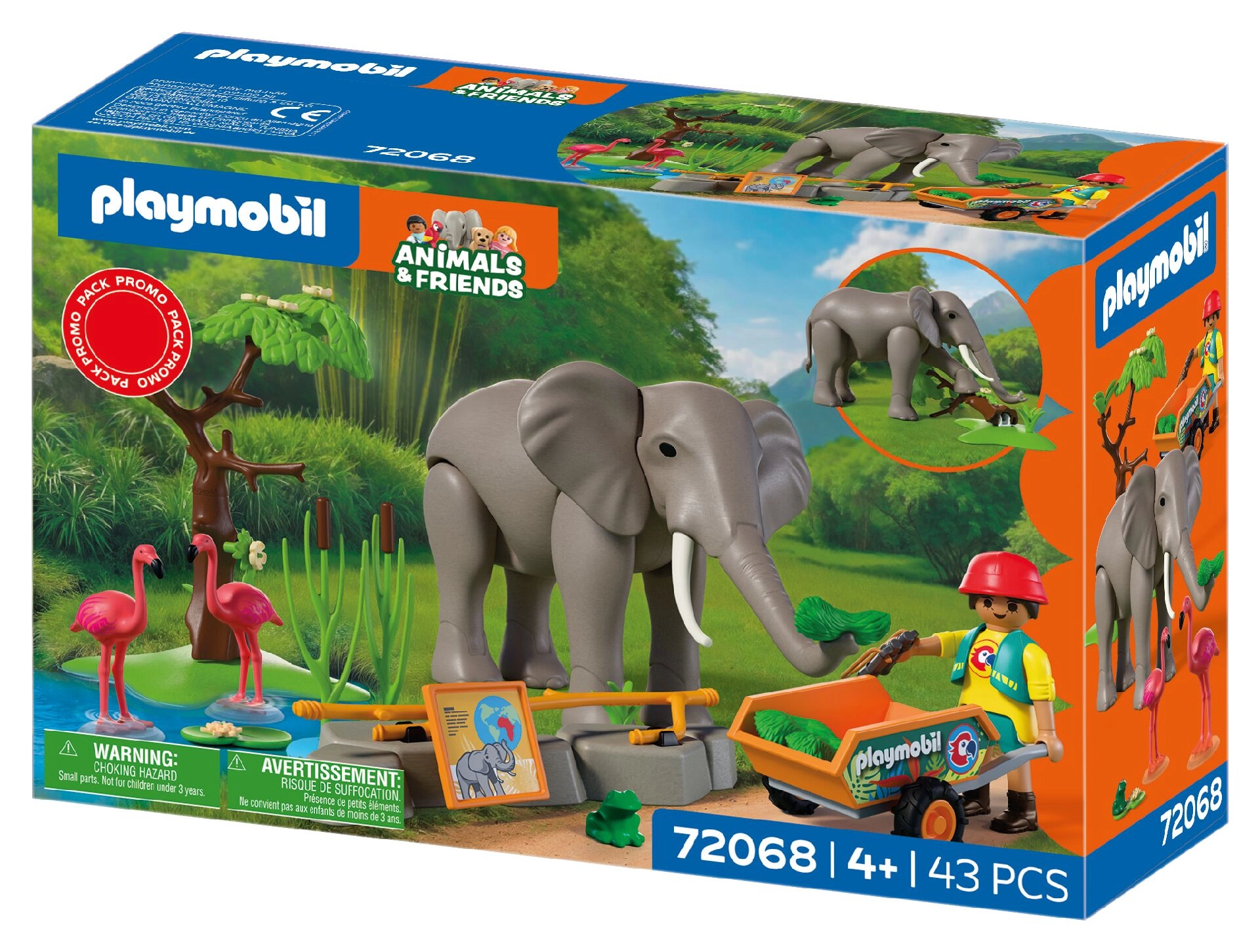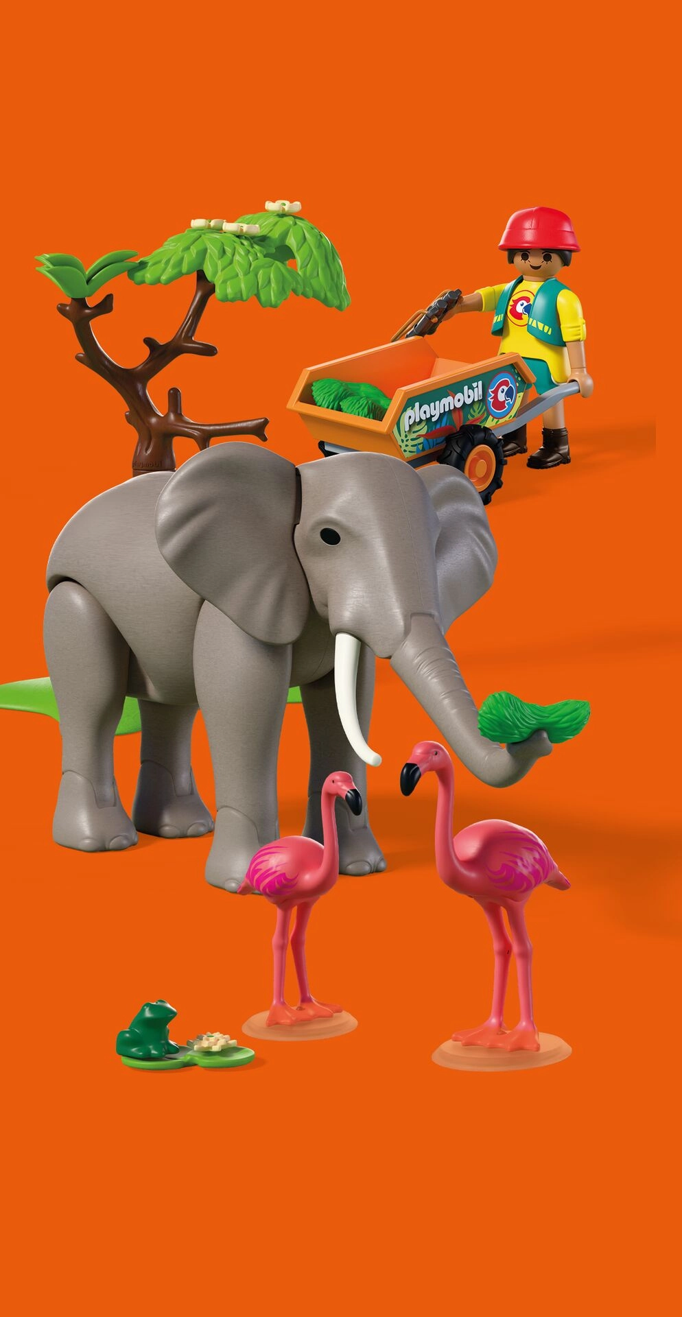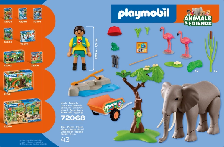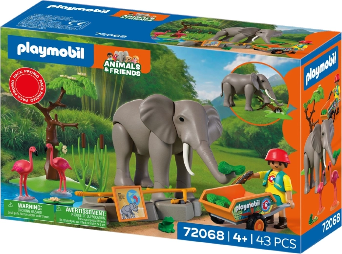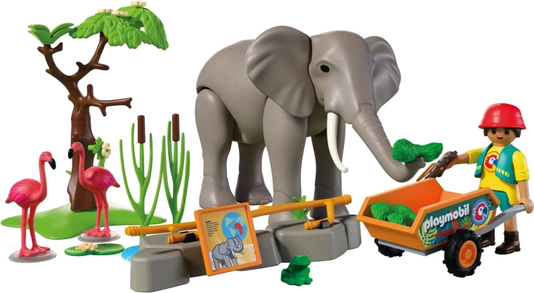 Avasta mänguline ZOO-maailm komplektiga PLAYMOBIL Animals & Friends, kus majesteetlik elevant elab aedikus koos flamingode ja väikese konnakesega. Liikuv elevant oskab liigutada jäsemeid, haarata toitu londiga ning isegi ümber lükata puu, mis lisab mängule realistlikkust ja põnevust. Hooldaja veab kärul värsket sööta ja jälgib loomi binokliga. Komplektis on ka veemaht, rohelus ja rohkelt tarvikuid lõpututeks lugudeks.