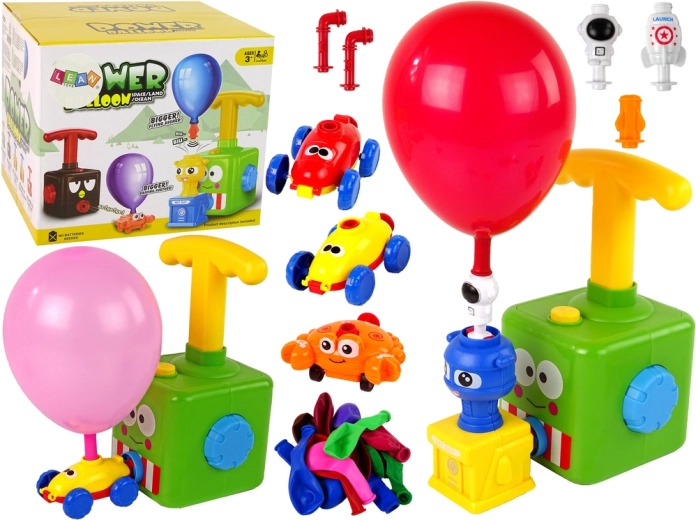 Komplekt sisaldab stardiseadet, erinevaid autosid (võidusõidu- ja krabikujuline), ühendusi ja õhupalle. Tänu lihtsale kasutusele omandavad lapsed kiiresti järjekorra: pane õhupall külge, ühenda auto, pumpa hoovaga ja vajuta GO nuppu. Korraldage koduseid võistlusi ja vaadake, milline auto jõuab kõige kaugemale!