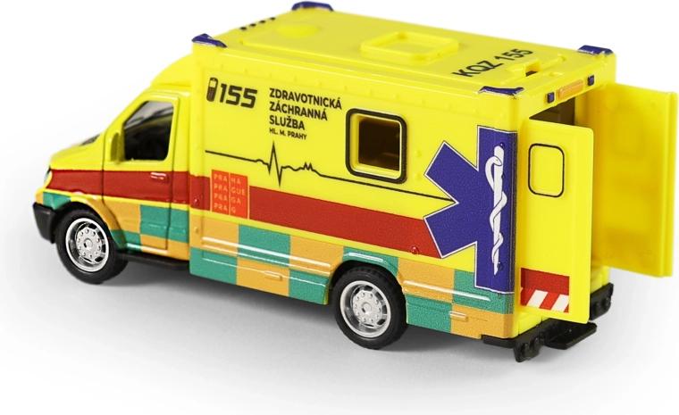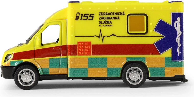Pääste on teel! Stiilne metallist kiirabi, loodud koostöös Praha pealinna tervishoiu kiirabiteenistusega, rõõmustab iga väikest päästjat. Tänu tagasikeritavale hoorattale piisab, kui tõmmata auto tagasi, lasta lahti ja seiklustest tulvil missioon võib alata.