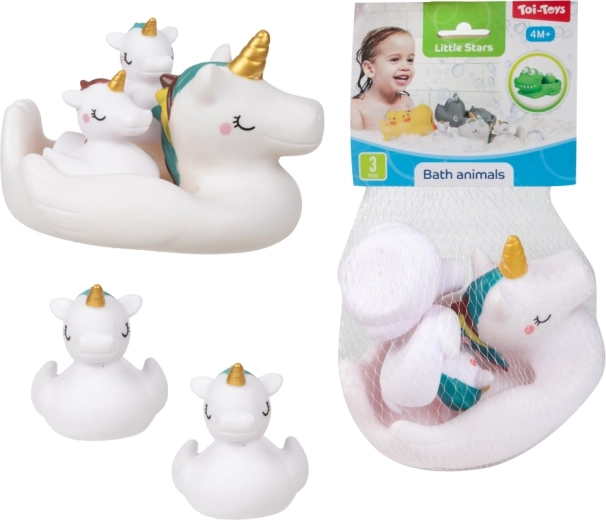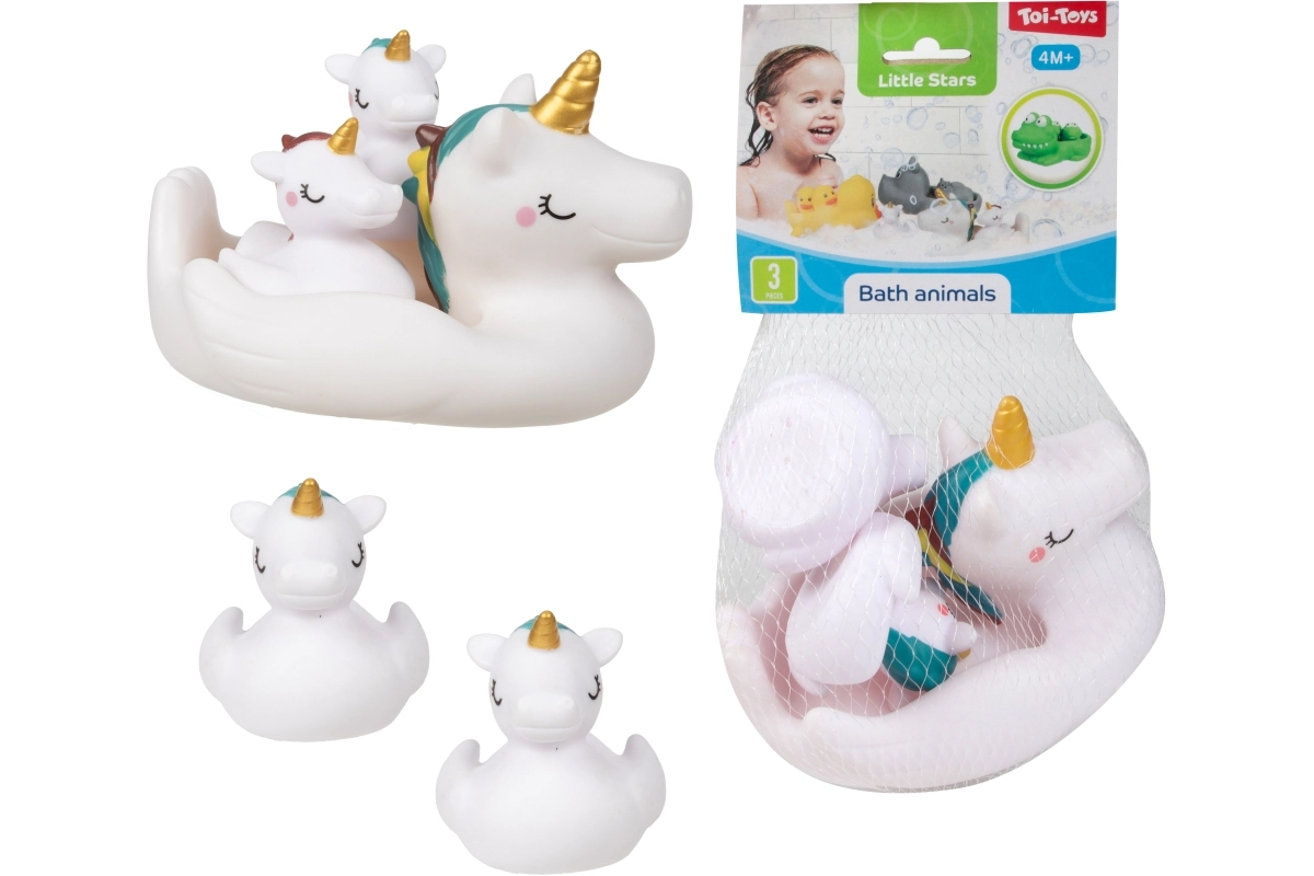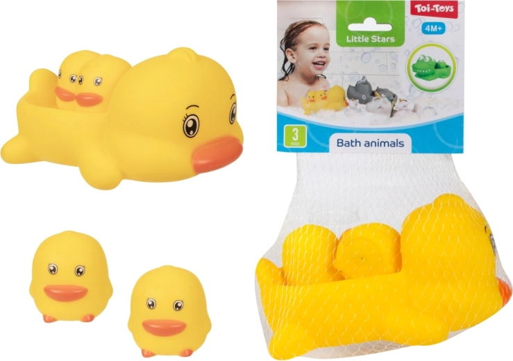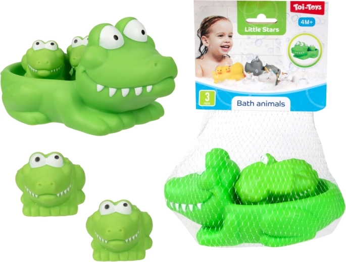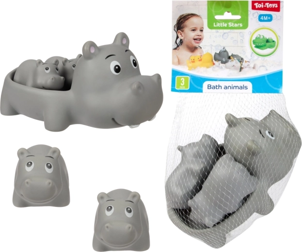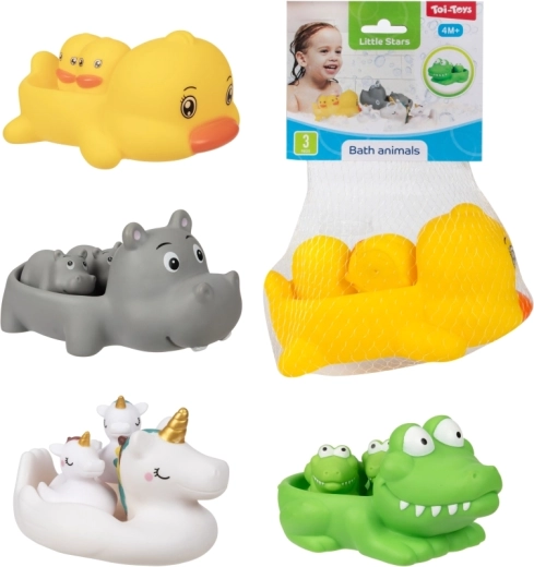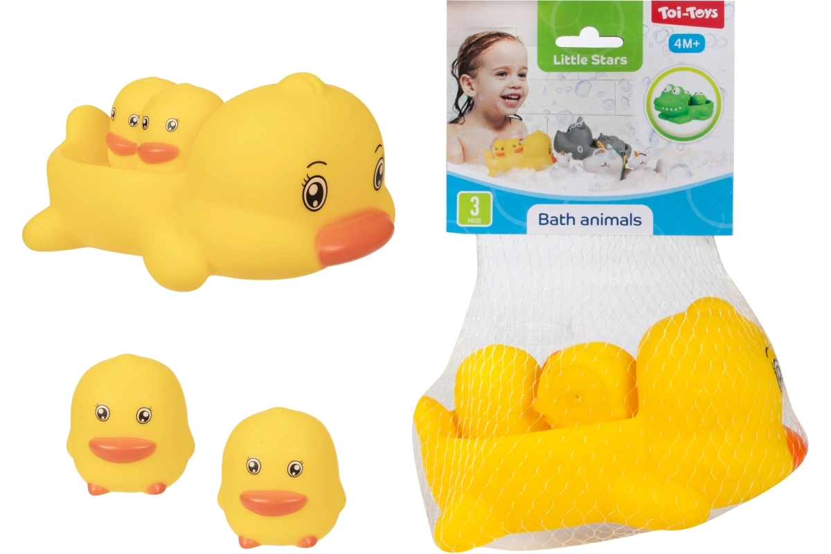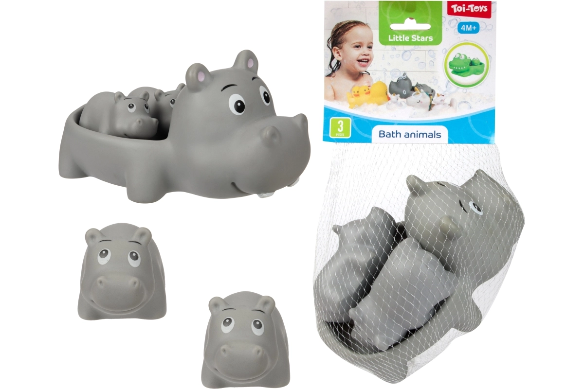 Muuda vanniskäik lõbusaks rituaaliks armsate veemänguasjade komplektiga. Pakis on 1 suurem ujuv loomake ja 2 väiksemat figuuri, keda suurem loomake saab seljas kaasa vedada. Mänguasjad on kerged, ujuvad ja kergesti haaratavad ka väikeste käekeste jaoks. Praktiliselt pakitud võrku. Sobib alates 4. elukuust.
