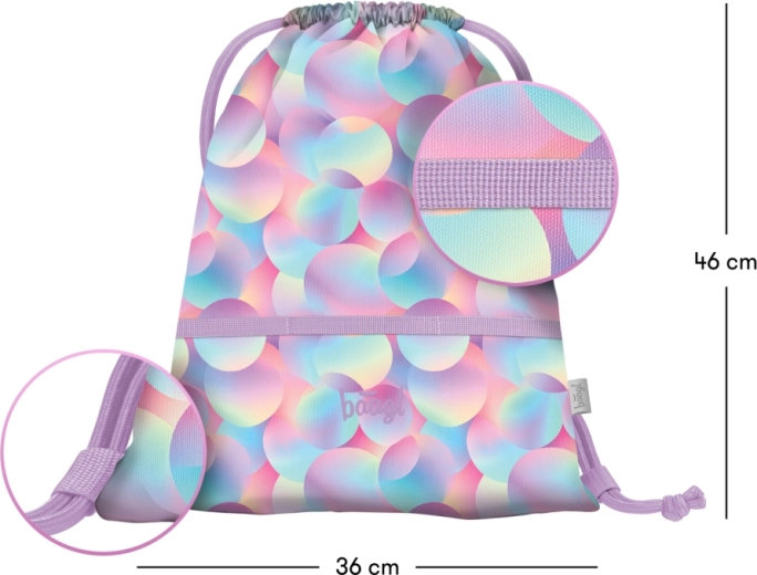 Stiilne Baagl Candy kott pastelse mullimustriga on suurepärane kaaslane nii lastele kui täiskasvanutele. Vastupidav tekstiil peab vastu igapäevasele kasutusele ja on lihtne puhastada. Topeltnöörid tagavad kiire sulgemise ning mugava kandmise nagu seljakotti.