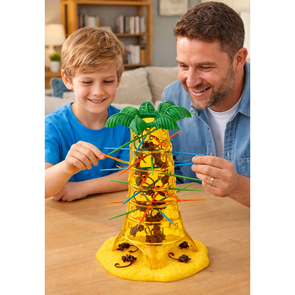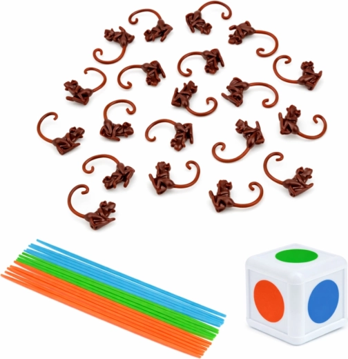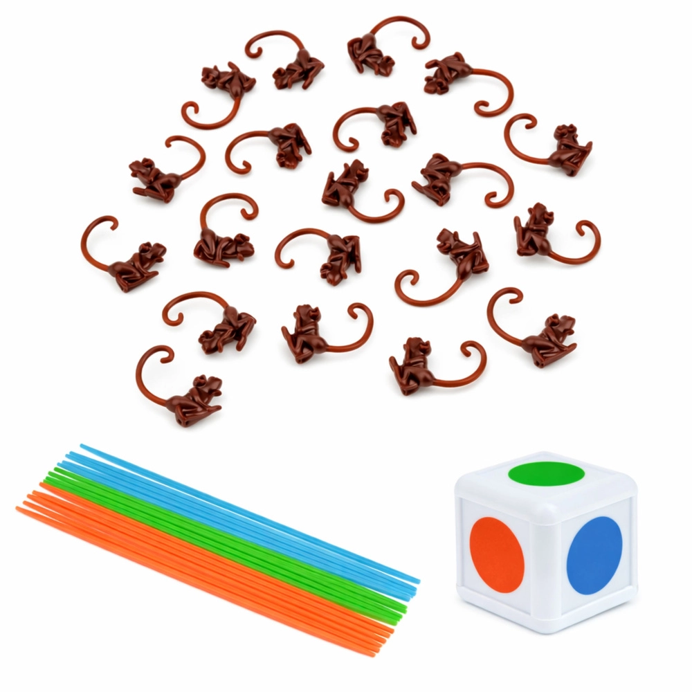 Pange palm kokku, põimige läbi värvilised pulgad ja riputage ahvid külge. Mängijad viskavad kordamööda täringut ja tõmbavad täringu määratud värvi pulga. Iga läbimõtlematu käik võib põhjustada ahvide kukkumise – võidab see, kellel kukub neid kõige vähem. Mäng sobib suurepäraselt pere pärastlõunaks, lastepidudeks ja kiireteks peomikromängudeks.