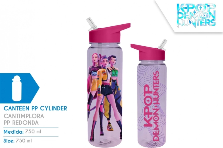 Stiilne 750 ml spordipudel motiiviga K-POP Demon Hunters on ideaalne treeningutele, kooli ja reisidele. Kerge ja vastupidav PP-materjal tagab mugava kasutuse ja lihtsa hoolduse, praktiline kork aitab vältida mahaloksumist ning hoiab joogi värskena kogu päeva.