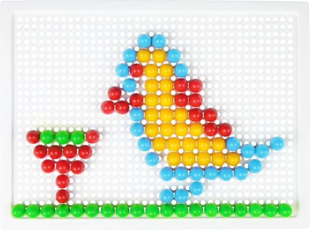 Nuppude asetamine ruudustikku treenib haaret, silma-käe koordinatsiooni ja kannatlikkust. Ideaalne tegevus eelkooliealistele.