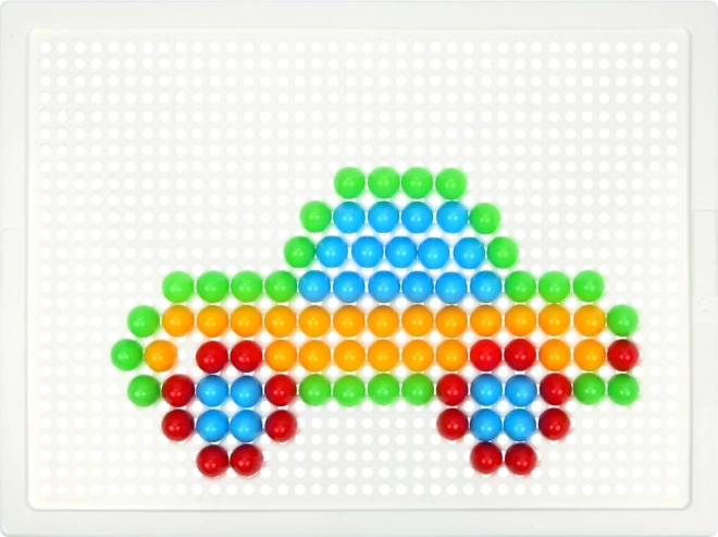 10 mm läbimõõduga nupud erksates värvides püsivad hästi tugevast plastist alusel (21 × 16 cm), tagades mugava meisterdamise.