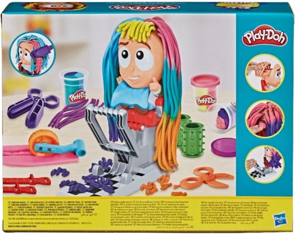 Selle Play-Doh juuksurikomplektiga sünnivad pöörased soengud käigu pealt. Istuuta tegelane tooli, vajuta ja peast kasvab värviline lakka, mida saab edasi lõigata, kammida ja kaunistada. Mitmevärviline voolimismass ja lõbusad lisatarvikud muudavad iga lõikuse uueks loovusrohkeks looks.