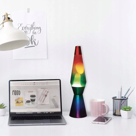 Avastage klassikalise laavalambi võlu modernses vikerkaarekuues. Soojas valguses voolav vaha tekitab rahustava liikumise, mis sobib suurepäraselt lõõgastumiseks pärast pingelist päeva ning on samas originaalne sisustusdetail elutuppa, magamistuppa või tööruumi. Tänu 40 cm kõrgusele mõjub see pilkupüüdva dekoratsioonina, võtmata liigselt ruumi.