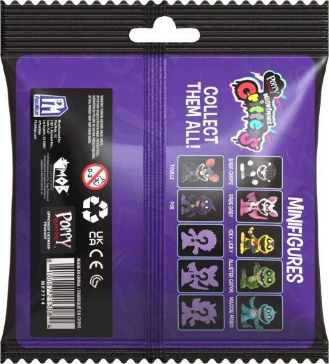 Täienda oma kollektsiooni kõhedalt lõbusate minifiguuridega Poppy Playtime Nightmare Critters – seeria 4. Iga tegelane jäädvustab 4. peatüki ikoonid erksate värvide, suurte naeratuste ja ainulaadse stilistikaga, mis tõmbab riiulil kohe pilku.