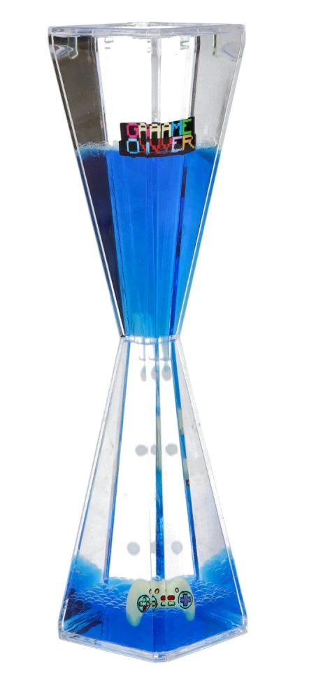 Naudi rahulikku tilkumist läbipaistvas liivakella-kujulises korpuses. Geeljas vedelik voolab sujuvalt ülemisest kambrist alumisse ning loob lummava efekti, mis aitab rahustada meelt ja toetab keskendumist. Mängugraafika ja „Game Over” kiri teevad sellest ideaalse kingituse nii mänguritele kui ka disainividinate austajatele.