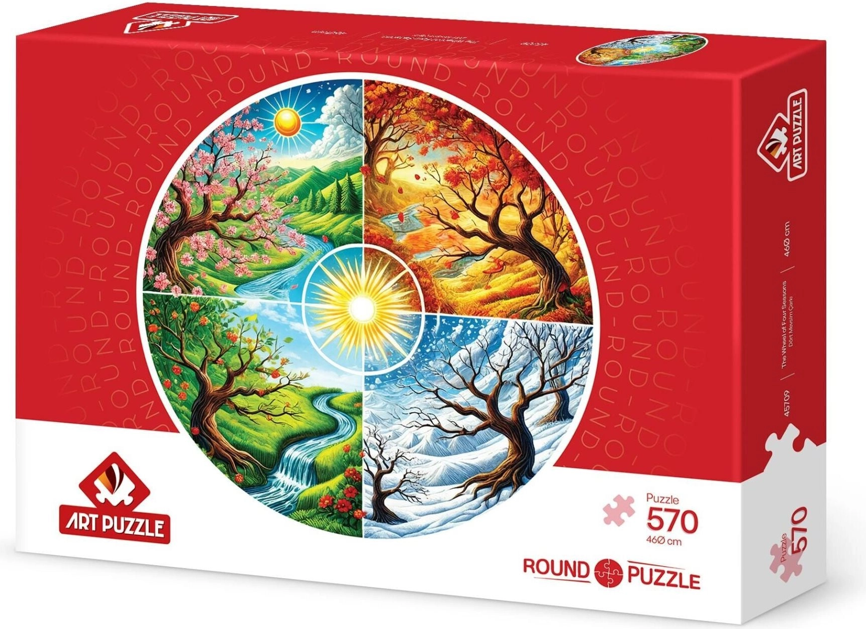 Nautige ainulaadset kokkupanekukogemust ümmarguse puslega, mis ühendab kõik neli aastaaega üheks harmooniliseks pildiks. Tänu 570 täpselt lõigatud tükile on kokkupanek sujuv, lõbus ning sobib nii veidi kogenumatele kui ka kirglikele puslesõpradele.
