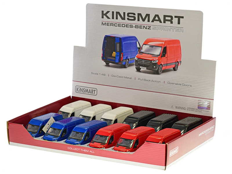 Detailne Mercedes‑Benz Sprinteri 1:48 mõõtkavas metallist kaubiku mudel rõõmustab nii lapsi kui ka kollektsionääre. Mudelil on avanevad uksed, realistlikud proportsioonid (12,5 × 5,5 × 5,5 cm) ja lõbus pull‑back mehhanism ettepoole sõitmiseks. Saadaval 4 värvis, valmistatud vastupidavast metalli ja plasti kombinatsioonist, sobib alates 3. eluaastast.