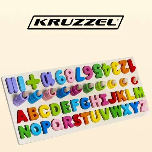 See multifunktsionaalne puidust pusle ühendab lõbu ja õppimise ühes. Mängides õpivad lapsed tundma tähtede ja numbrite kujusid, harjutavad neid nimetama, moodustavad esimesi lihtsaid sõnu ning treenivad arvutamist rõngaste abil tappidel. Elav värvilahendus motiveerib avastama ja toetab loovust ning keskendumist.