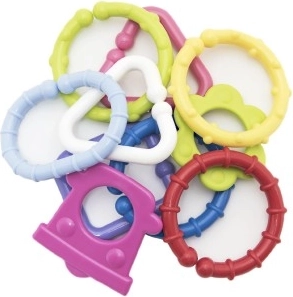 See värviliste plastkujude komplekt on ideaalne esimene mänguasi imikutele. Detailid klõpsavad hõlpsasti kokku ja püsivad kindlalt, nii et lapsed saavad korduvalt ehitada kette ja lihtsaid konstruktsioone. Erinevad tekstuurid ja värvid pakuvad rikkalikku meelelist stimulatsiooni ning kõrin-efekt köidab ja rahustab.