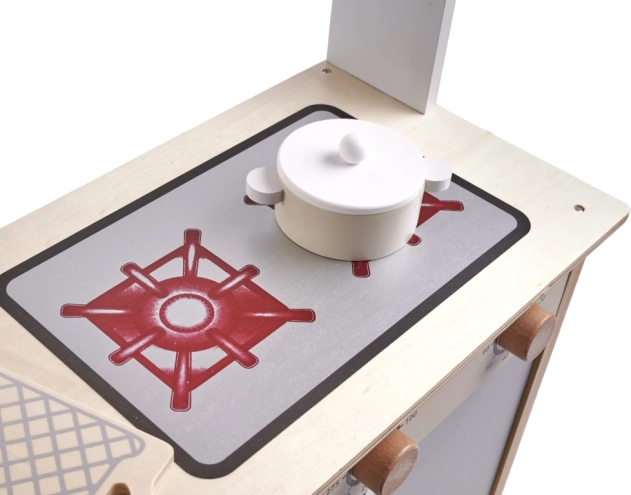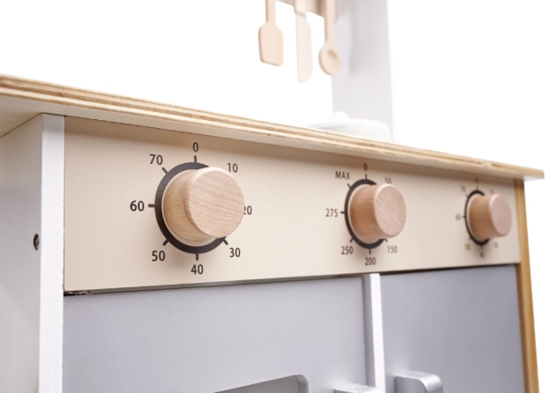 See mänguköök pakub realistlikke funktsioone, nagu kraanikauss, pliit ja mikrolaineahi, mis valmistavad lapsed ette päris köögiks.