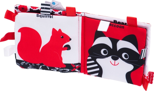 Valmistage oma laps ette võluvaks avastusretkeks kujundite ja mustrite maailma selle imelise raamatuga. Raamat on kujundatud kontrastsetes värvides, nagu must, valge ja punane, mis on imikute nägemisstimulatsiooniks ideaalsed. Raamatus on neli tekstiilset lehte loomakestega, nagu linnuke, jänkuke, öökull, rebane, karu, orav ja pesukaru.