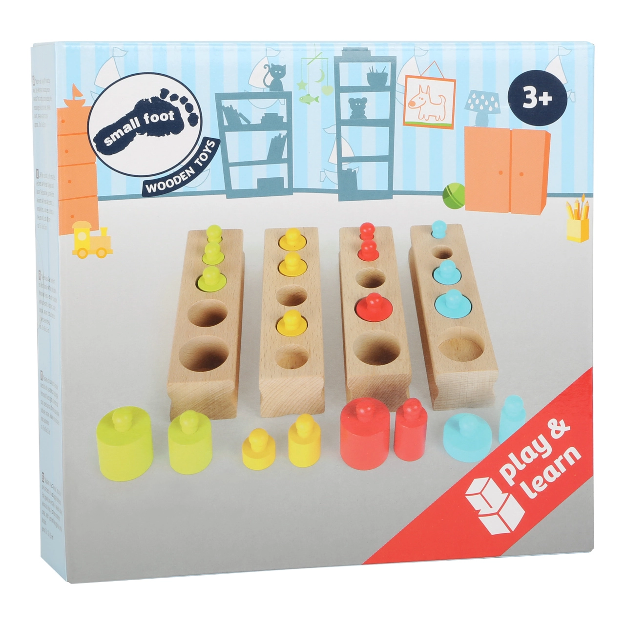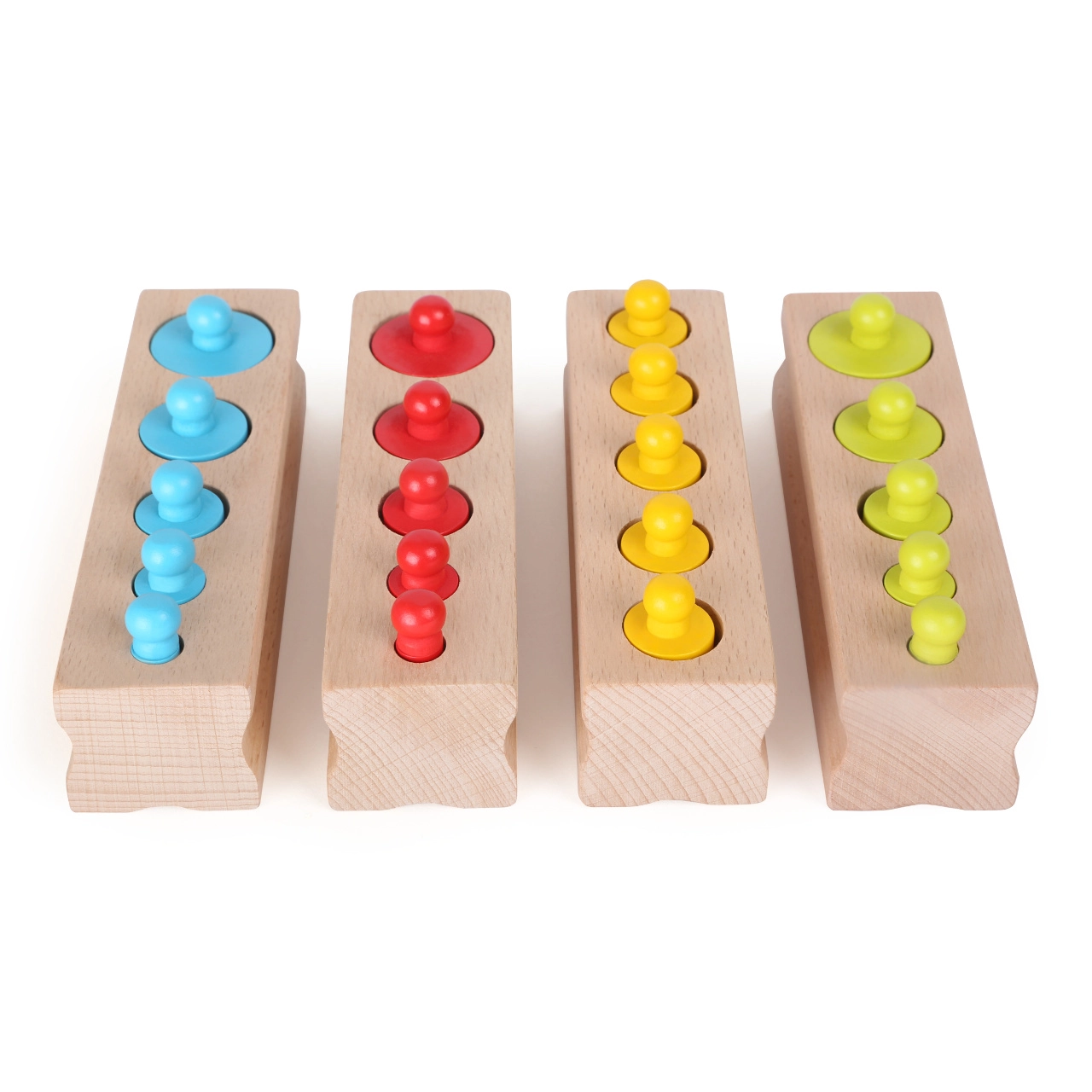 Puidust värvilised rullid aitavad lastel mõista mustreid ja teha otsuseid õige paigutuse kohta.