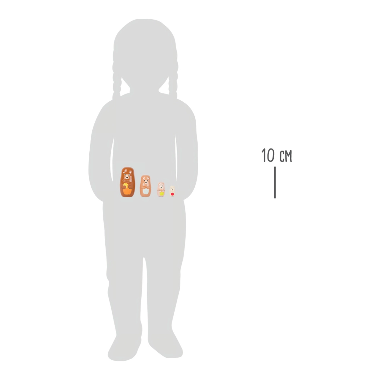 See klassikaline puidust matrjoška kujutab karuema poegadega, kes peituvad üksteise sisse vastavalt suurusele. Lapsed harjutavad kannatlikkust, loogikat ja osavust ning kogevad avastamisrõõmu, kes peitub seest.