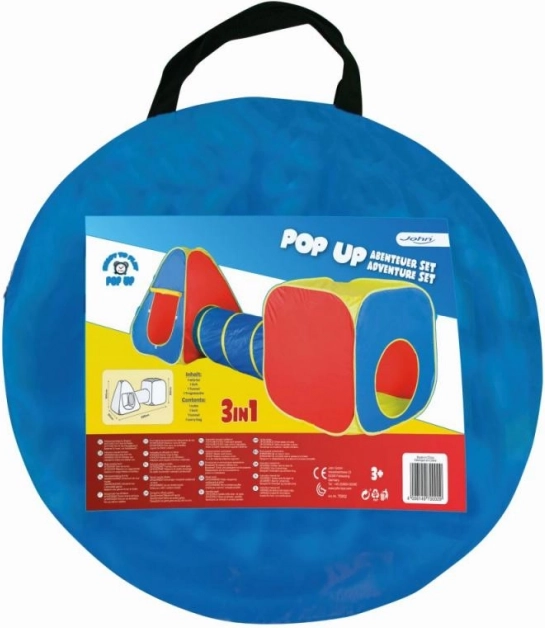 Lõbus 3-ühes pop-up telkide komplekt muudab toa või aia laste mänguväljakuks. Komplektis on kuuptelk, tunnel ja pop-up telk, mida saab kasutada koos või eraldi. Kiire vaevatu ülespanek, kerge konstruktsioon ja lihtne hoiustamine tagavad mugava mängu nii toas kui õues.