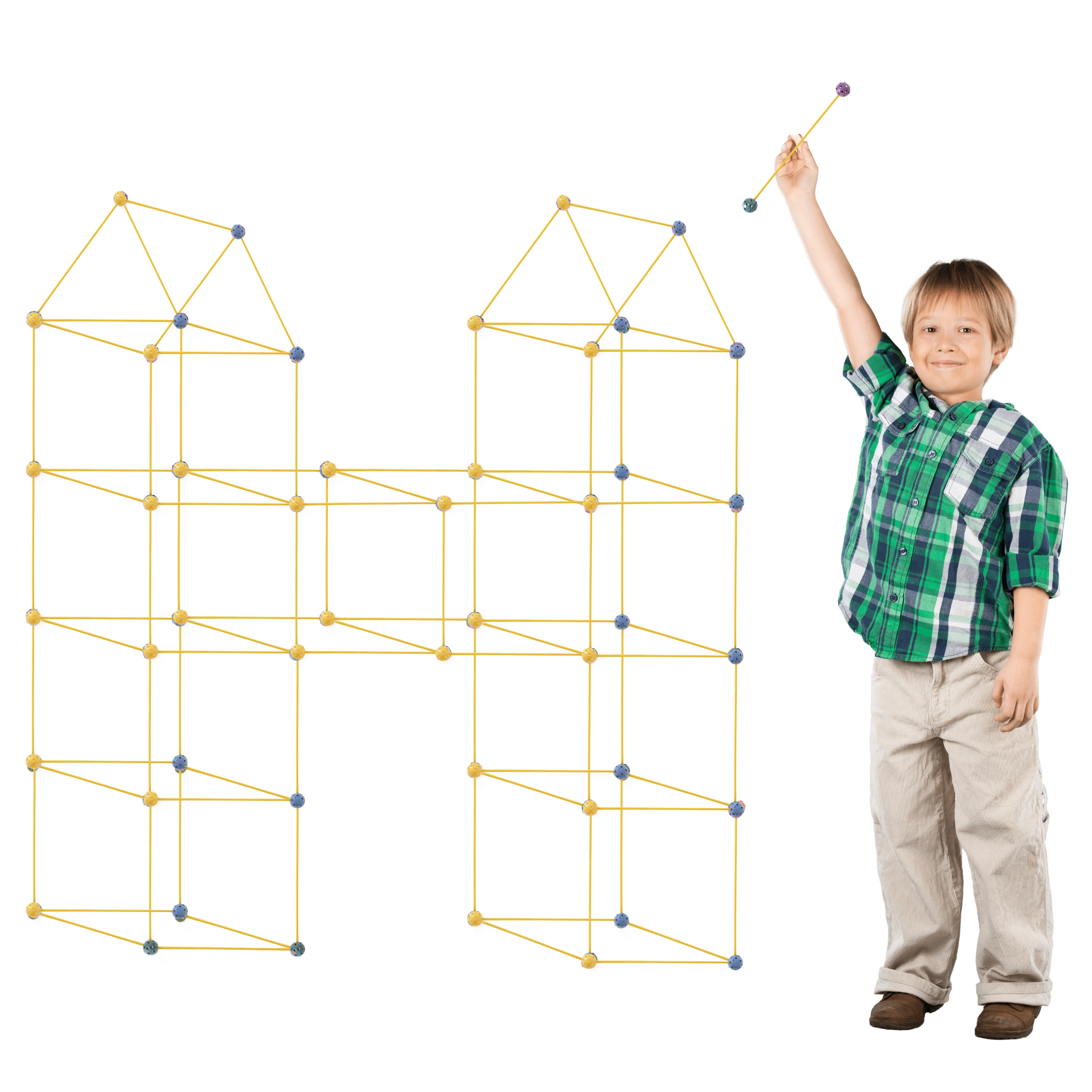 Avastage loomingulise ehitamise võlu meie suurepärase komplektiga, mis võimaldab lastel ehitada laia valikut konstruktsioone, nagu telgid, baasid või isegi koerakuudid! Komplekt sisaldab 75 osa, sealhulgas 51 kollast pulka ja 24 eri värvi ühenduskuuli, mis pakuvad lõputuid ehitusvõimalusi.