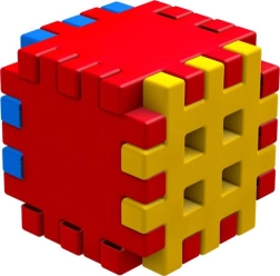 Sakilised servad ja võrelised pinnad võimaldavad kindlat ühendust ning lihtsate 3D-kujude, klotside ja tornide ehitamist.