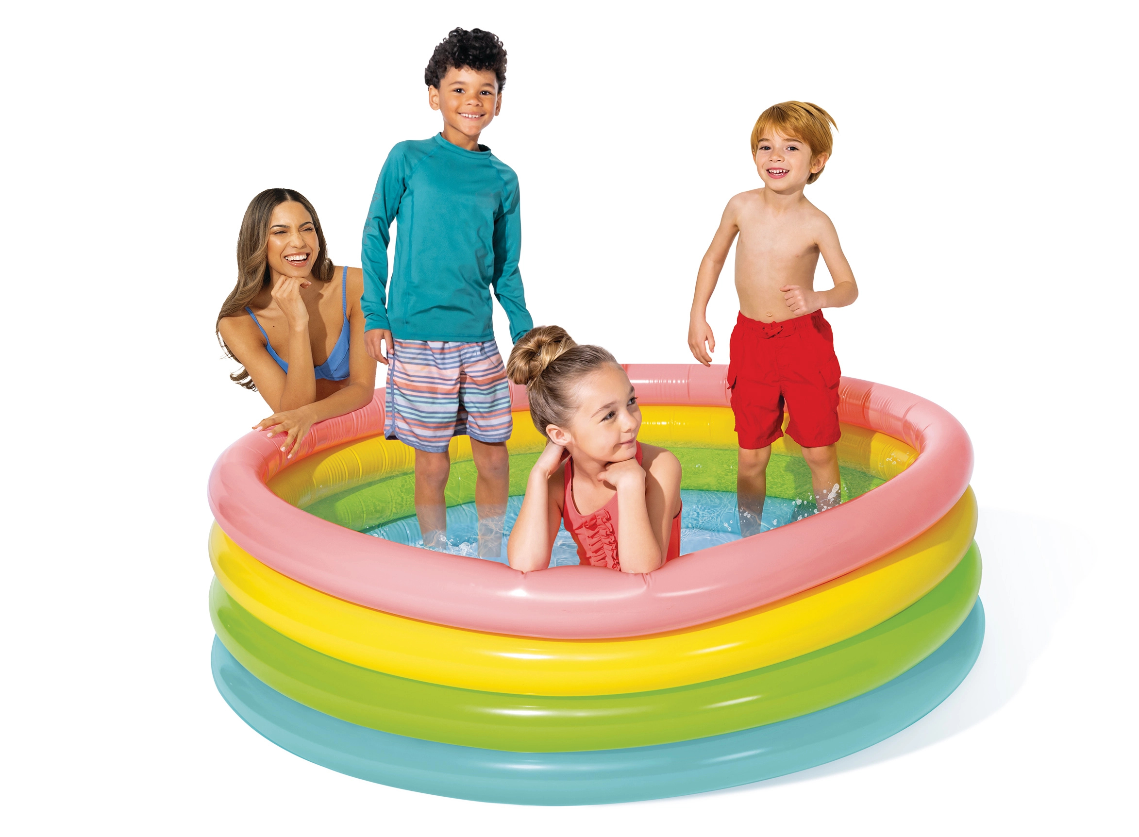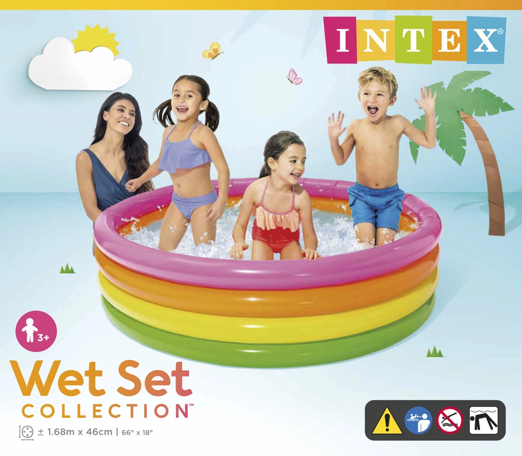 Naudi suve selle neljavärvilise INTEXi laste täispuhutava basseiniga mõõtudega 168 × 46 cm. Tänu neljale stabiilsele rõngale on see vastupidav ja mugav ning täitmiseks valmis 10 minutiga. Ideaalne väiksematesse aedadesse, pakub värskendust ja palju lusti lastele mahutavusega 780 l.