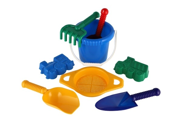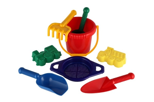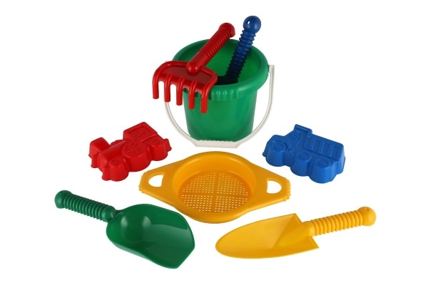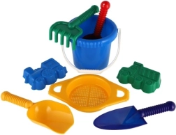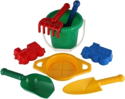 Sisaldab kõiki vajalikke vahendeid ehitamiseks ja loovaks mänguks liival – ämber, sõel, labidad, rehad ja kaks vormi.