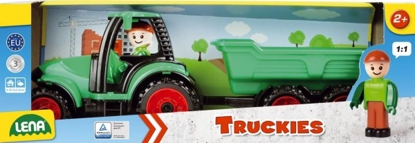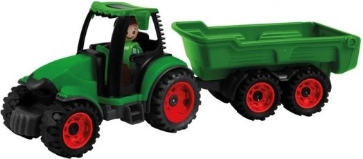 Traktor järelhaagisega Truckies sarjast rõõmustab väikseid ehitajaid ja põllumehi. Tänu vastupidavale konstruktsioonile ja täielikult mehaanilisele juhtimisele saavad lapsed nautida autentset mängu ilma patareideta – kasti tõstmine, haagise ühendamine ja lahtiühendamine ning juhtimine koos juhi figuuriga.