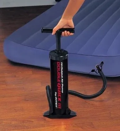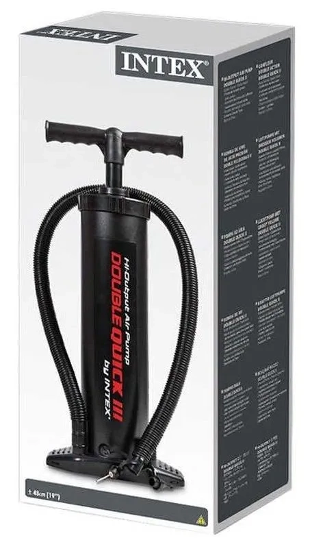 Intex Double Quick III on praktiline käsipump, mis on loodud kiireks ja mugavaks täispuhumiseks. Kahetoimeline mehhanism surub õhku nii üles- kui allaliikumisel, lühendades märgatavalt täispuhumisaega ja säästes jõudu. Tugev konstruktsioon koos stabiilse jalatoega hoiab pumba paigal ka intensiivsel kasutamisel.
