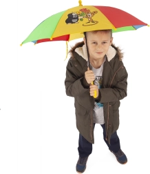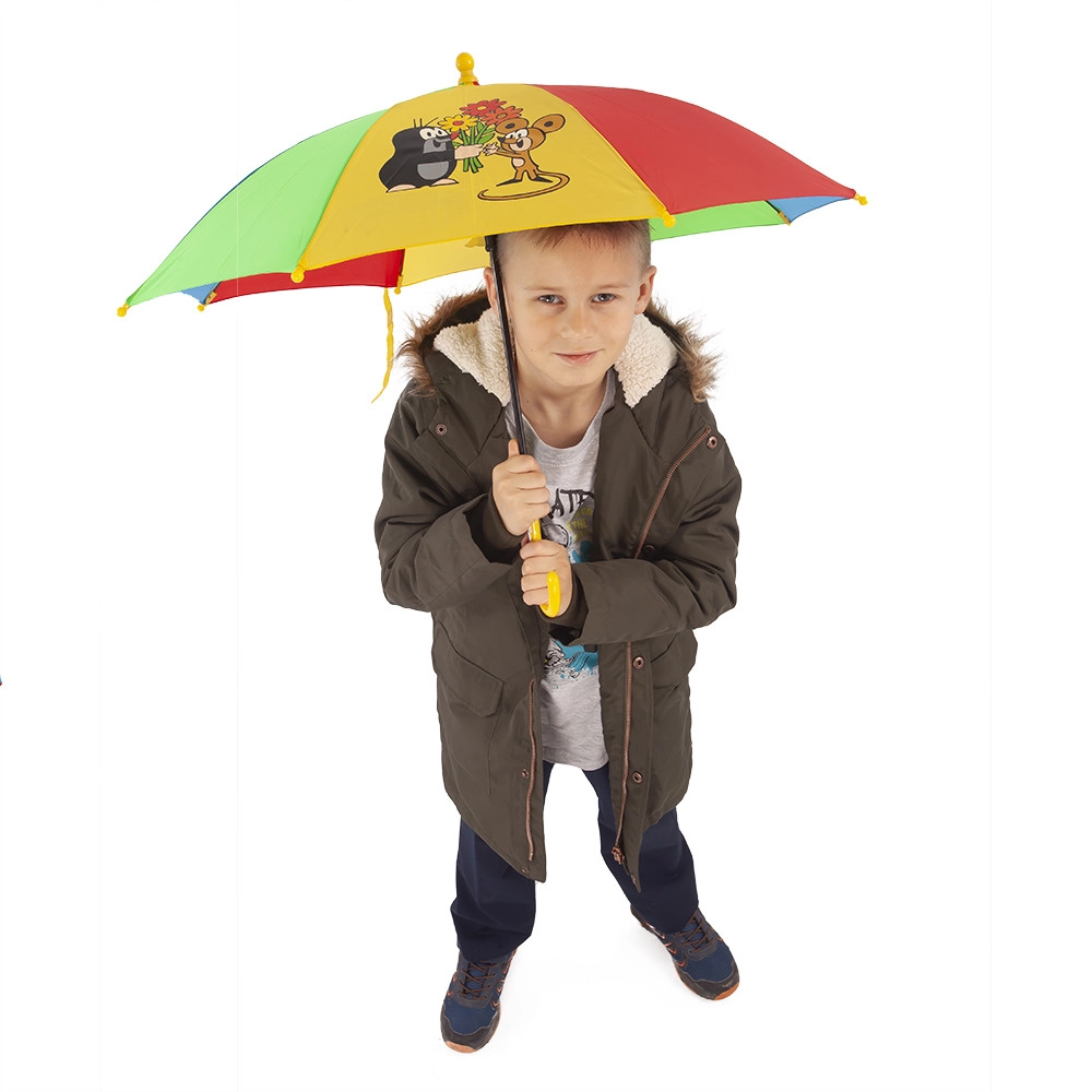 Enam pole kiirustamist enne hoovihma – MUTI motiiviga laste vihmavari on praktiline, kerge ja igapäevaseks kandmiseks ohutu. Värvilised paneelid lõbusate illustratsioonidega püüavad pilku ja kollane kaardus käepide sobib väikestele kätele.