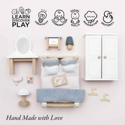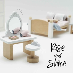Le Toy Van toob sinuni magamistoakomplekti, mis lisab igasse nukumajja elegantsi ja mugavust. Laste mänguline ja unistav fantaasiamaailm muutub selle komplektiga veelgi tõelisemaks.