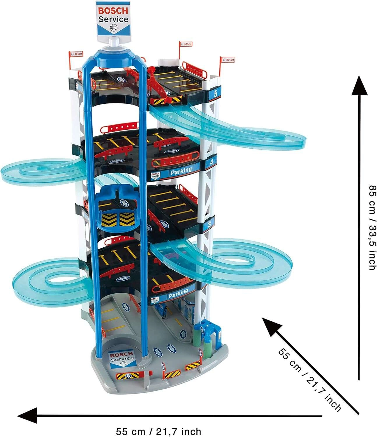 See vastupidav 5-korruseline BOSCH Service garaažikompleks Kleinilt on loodud väikestele võidusõitjatele. See pakub poolläbipaistvaid topelt spiraalrampe ülemisest korrusest alla, käsitsi juhitavat lifti autode liigutamiseks korruste vahel ja stardi/finiši ala kahele autole. Igal tasandil on rohkelt parkimiskohti ning maa-korrusel lisaks teenindusala “jaamaga” realistlikuks mänguks.