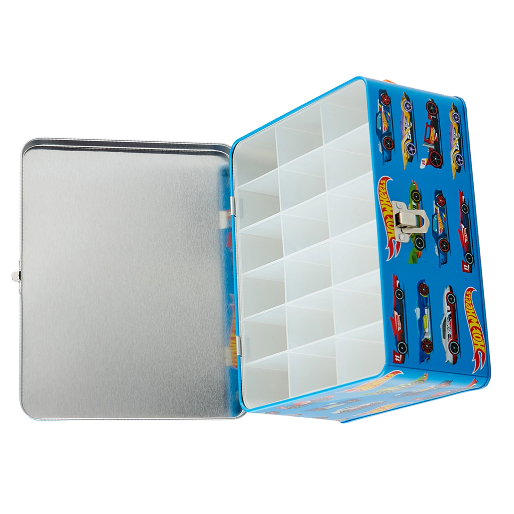 See stiilne sinine kohver võidusõidugraafika ja loosungiga „Challenge Your Limits” on suurepärane lahendus kõigile väikestele kollektsionääridele. Seest leiad eemaldatava võre 18 eraldi lahtriga, mis hoiavad mudelautod korrapäraselt eraldatuna ja kaitstuna. Robustne metallkonstruktsioon ja usaldusväärne pannal-kinnitus tagavad turvalise hoiustamise ka kandmisel.