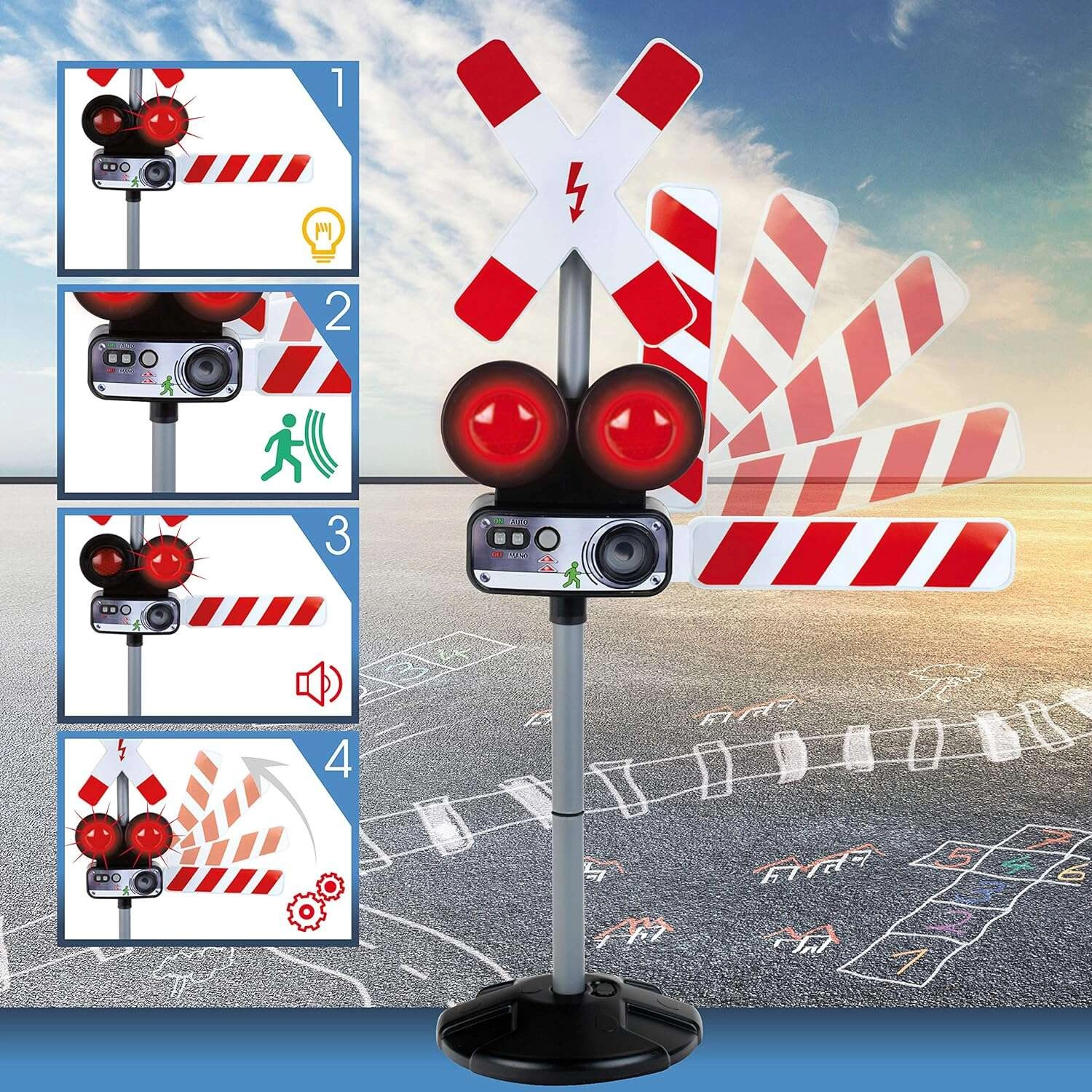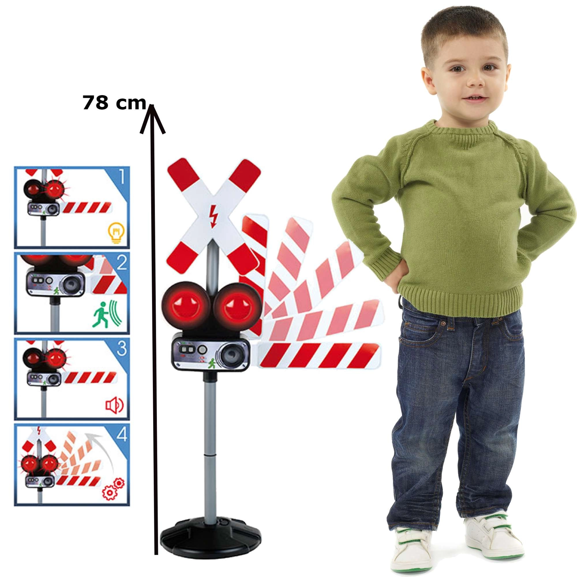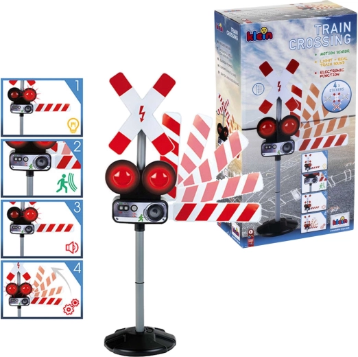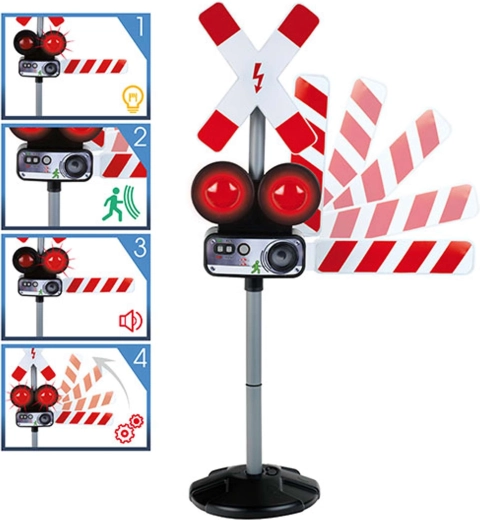Kaks punast vilkuvat tuld ja autentsed rongihelid loovad tõelise raudteeülesõidu atmosfääri, mis haarab lapsed koheselt mängu.