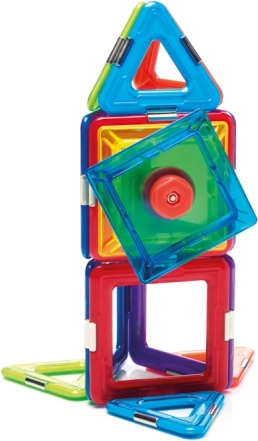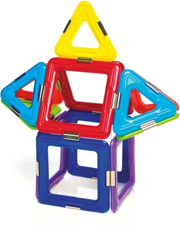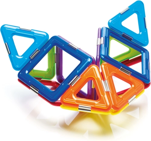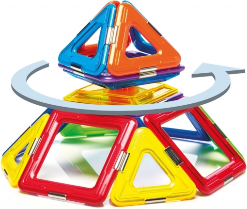 Komplektis on kokku 6 magnetilist ruutu, 8 kolmnurka ja 1 spinner, mis annab rohkelt võimalusi katsetamiseks. See komplekt on mitte ainult lõbus, vaid ka hariv ning arendab laste oskusi nagu ruumiline mõtlemine, koordinatsioon, keskendumine ja loovus.