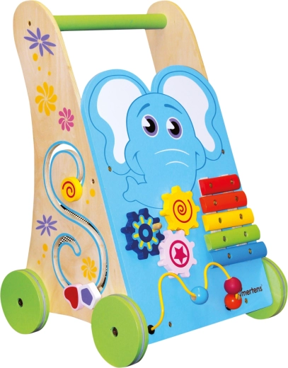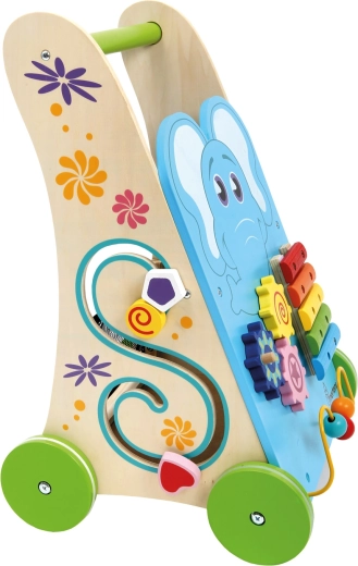 Toetage oma väikelapse esimesi samme ja igakülgset arengut selle stabiilse puidust tegevuskäimistugiga. See pakub õrna kõlaga ksülofonit, helmestelabürinti, kujude sorteerijat ja hammasrattaid, et avastada põhjus-tagajärg seoseid. Kummirattad tagavad vaikse liikumise ja kaitsevad põrandat, tugev 100% FSC-puidust konstruktsioon on turvaline ja vastupidav.