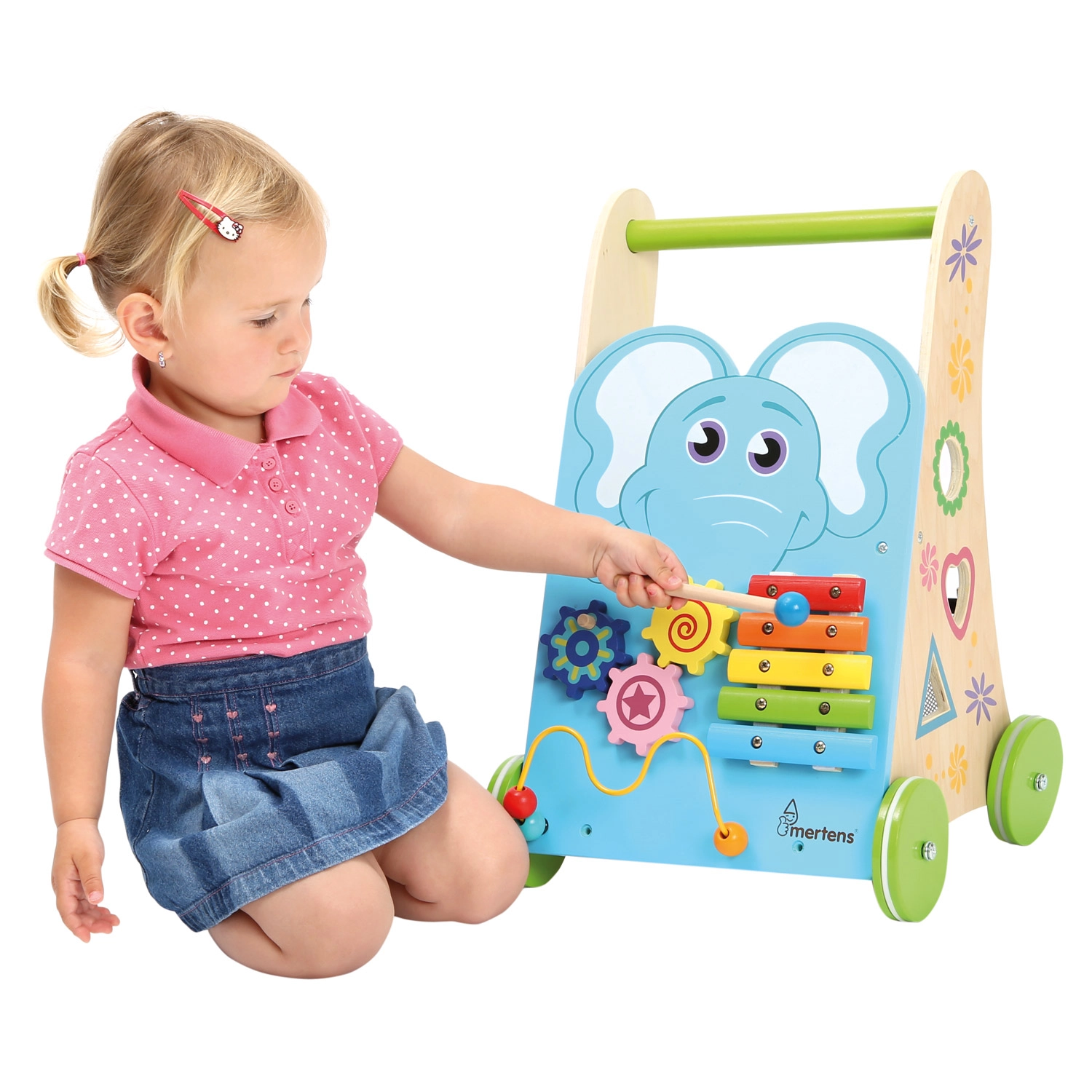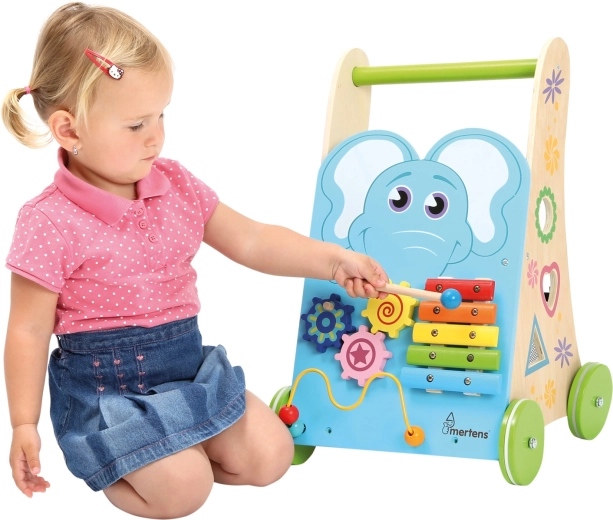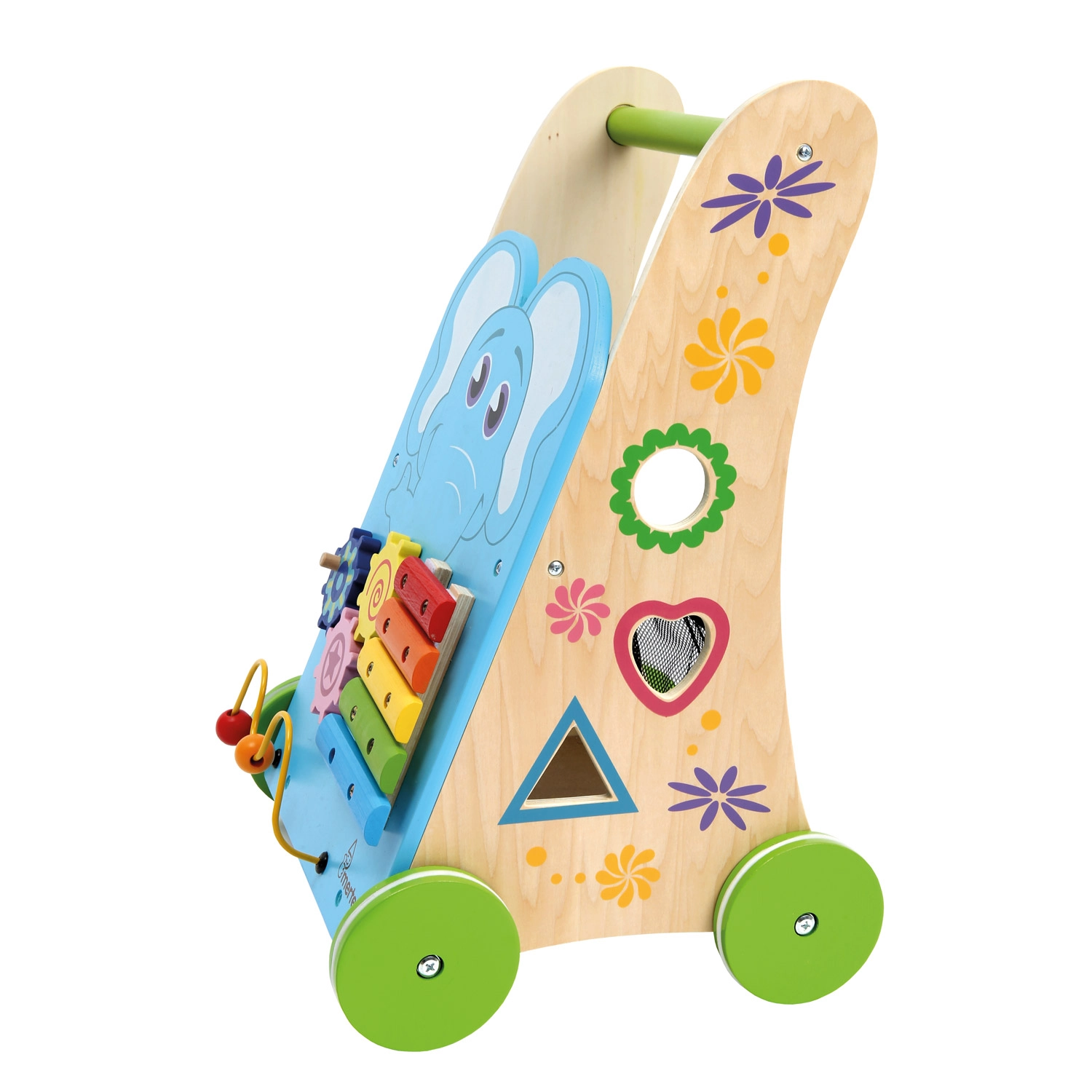 Ksülofon pulgaga, hammasrattad, helmestelabürint ja kujude sorteerija arendavad peenmotoorikat, kuulmist ja loogikat ühes kompaktses käimistugis.