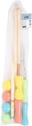 Komplekt on valmistatud 100% FSC-sertifitseeritud puidust, mis pärineb vastutustundlikult majandatud metsadest. Mängides arenevad peen- ja jäme-motoorika, käe-silma koordineerimine ning loomulik meeskonnatöö. Puidust pallid peavad läbima kõik väravad etteantud järjekorras – võidab see, kes teeb seda kõige kiiremini ja vähimate löökidega.