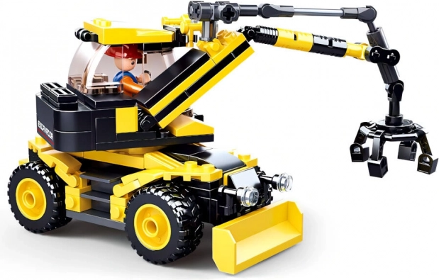 See Sluban Town seeria komplekt rõõmustab kõiki väikeseid ehitajaid. Kollaste ja mustade klotsidega ratasekskavaator pakub toimivaid elemente, nagu liikuv nool kopaga, minifiguurile mõeldud kabiin ja tugevad rattad. Tänu kvaliteetsele ohutust ja vastupidavust tagavale ABS-plastile peab see vastu ka intensiivsele mängule.