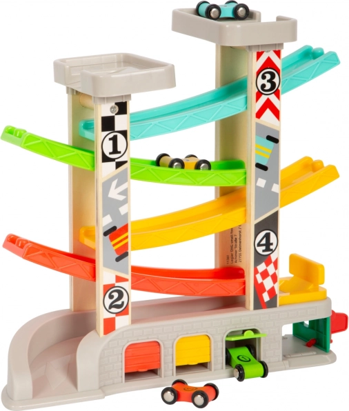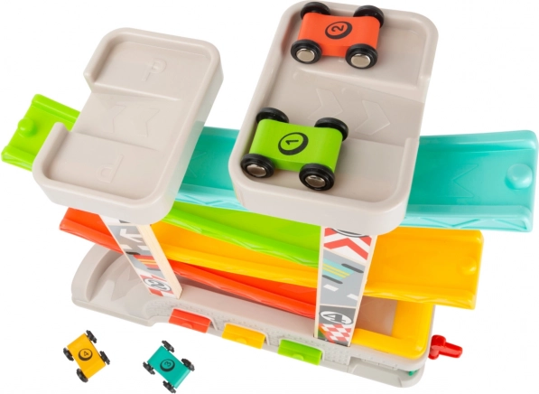 Võidusõidurada sisaldab eri tasandeid ja värvilisi väikeautosid, mis tagab lõbusa ja hariva mängu.
