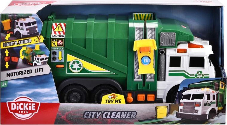Realistlik roheline City Cleaner prügiveok firmalt Dickie Toys vaimustab lapsi tulede ja helidega, toimiva kollase prügikasti tõstukiga ning liikuvate osadega. Suurepärane mänguasi prügiveo mängimiseks, taaskasutuse õppimiseks ja peenmotoorika arendamiseks.