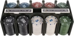 Värvilised žetoonid väärtustega 5–100 ja meeldiva kaaluga u 4 g segunevad hästi ja pakuvad autentset mängutunnet.