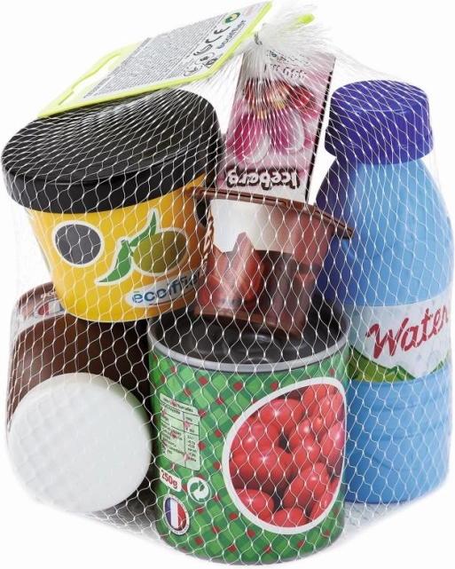 See toidukomplekt pakub autentseid toidumakette, mille hulka kuuluvad jogurtid, veepudel, köögiviljakonservid ja šokolaadikreem. Lapsed naudivad tunde mängides poodi või valmistades toite.