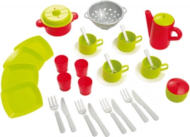 Kõik komponendid on valmistatud vastupidavast plastist, mis sobib suurepäraselt väikestele lastele ja on lihtne hooldada. Komplekt sobib lastele alates 18. elukuust ning pakub suurepärast võimalust tuua igapäevasesse mängu loovust ja sotsiaalseid oskusi.