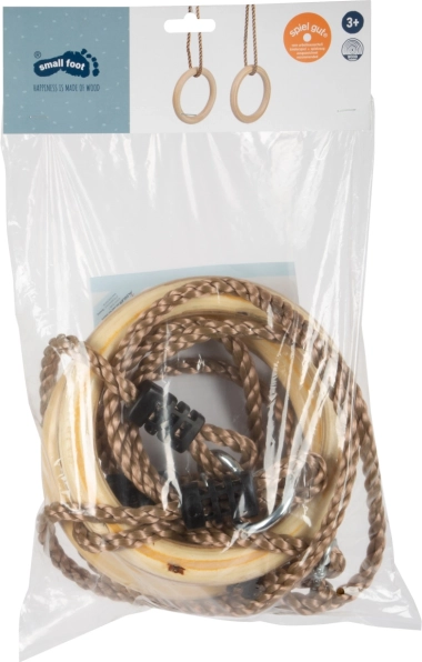small foot puidust võimlemisrõngad sobivad suurepäraselt laste treeninguteks, kes soovivad parandada oma füüsilist vormi. Need on kujundatud nii, et sobivad ka väiksematele lastele tänu rõngaste läbimõõdule ja köite lihtsale reguleeritavusele.