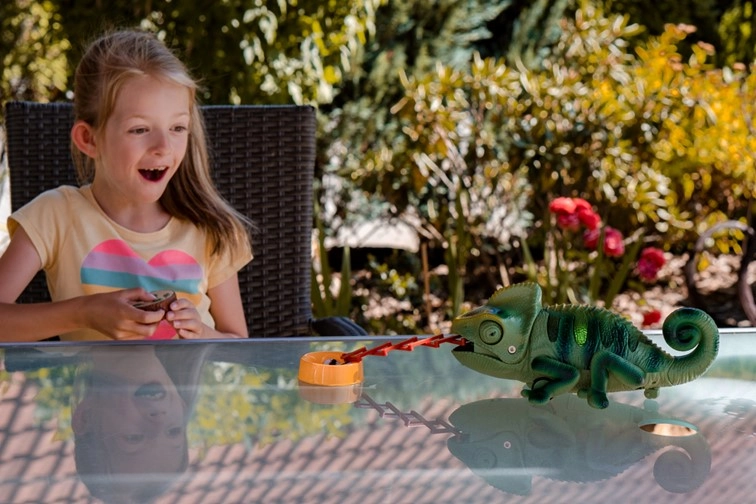 Mänguasi võimaldab juhtida liikumist edasi, tagasi, vasakule ja paremale. Kameeleoni selg võib särada viies värvitoonis ning liikuvad silmad, saba ja väljasirutuv keel võimaldavad interaktiivset mängu – näiteks kaasasolevatelt plastikkettalt “putukate” püüdmist. See mänguasi on suurepärane valik lastele, keda paeluvad tehnoloogia ja looduselemendid.