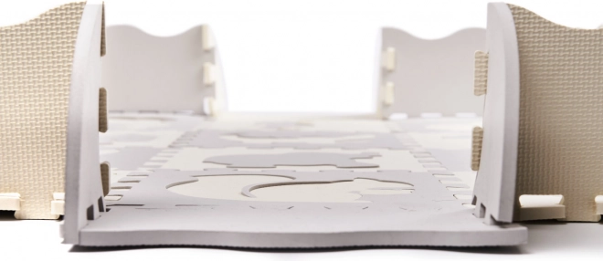 Pehme laste vahtpuslematt eemaldatavate kujunditega loob mänguks turvalise ja loova ala. Tõstetud servade abil saab kokku panna aediku, mis hoiab mänguasjad sees. Matt on veekindel, libisemiskindla pinnaga ja neelab lööke, mistõttu sobib ideaalselt esimesteks sammudeks. Neutraalne hall ja ecru värv sobitub igasse interjööri.