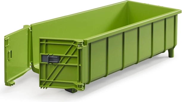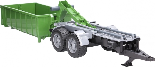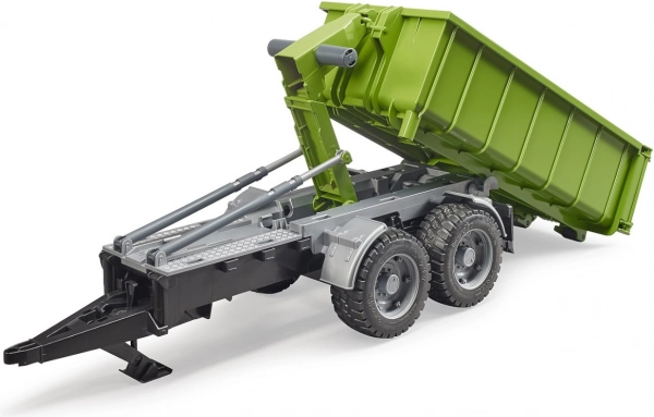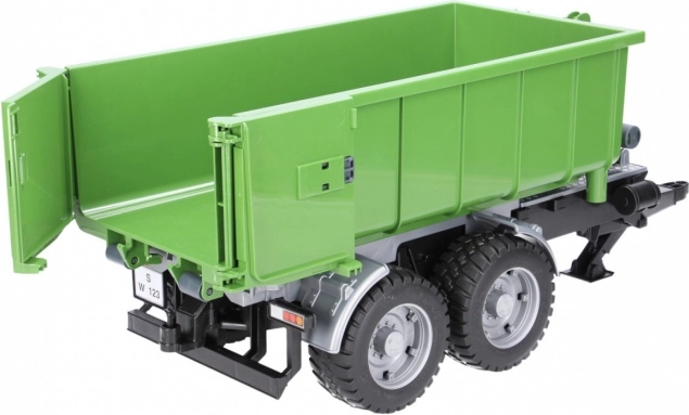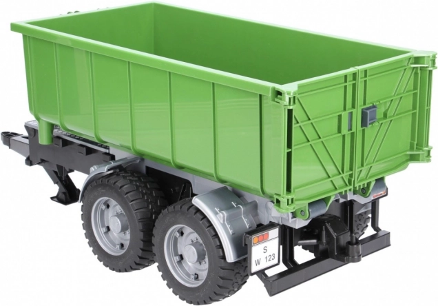 See realistlik BRUDERi haagis rohelise-musta kujundusega lisab igale traktorile mitmekülgse konteineri. Tänu kallutusmehhanismile ja avatavale tagaseinale on veose mahalaadimine lihtne, lisaks saab konteineri alusraamilt eemaldada ja kasutada eraldi.